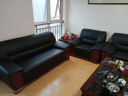 沙发外观时尚大气,用材厚实,做工工艺精致,皮料好,坐上非常柔软,舒坦,摆上,整个办公室室逼格立马提高,非常满意