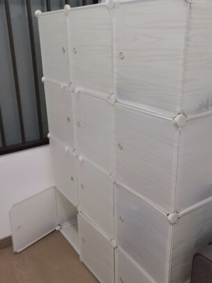 安装简便,简洁大方,很适合我滴小宿舍。注意安装的时候每个卡扣都要到位卡紧,这样装好整体就不会摇晃了,收纳功能很强大,柜门随意拆卸组合,方便好用,好评!
