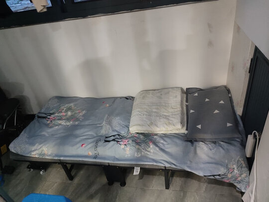 给月嫂阿姨买的简易床,没想到我老公180多斤都能睡,翻身都可以!很赞!