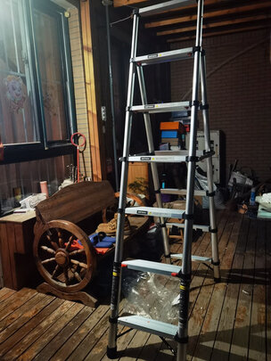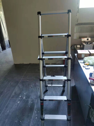 感觉还是恍恍荡荡的不太牢固稳定,不过一分钱一分货,比起其他的铝合金梯子,材质来说算是厚重的,支撑力还可以,就是使用时候要小心,上次没有卡到位,梯子啪的一下合上了,差点砸住手。