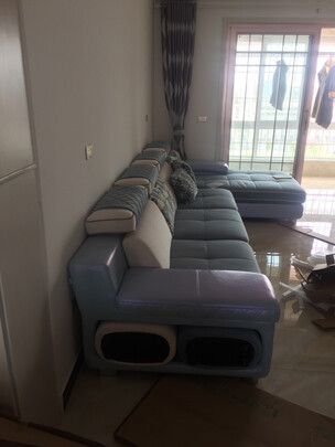 沙发很漂亮,放在客厅里大小正好,希望能用得久一些。