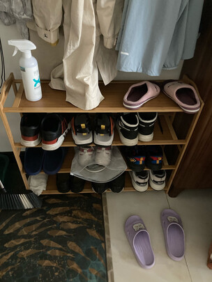 已经用上了,非常满意,正常放鞋子什么的都没问题,是竹板的,板子不是特别厚,但是也够用了,,,,,鞋子终于可以不用随意乱放了。