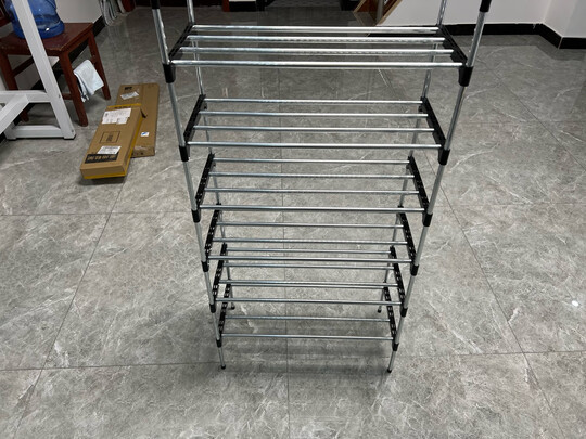 东西不错,每层可以放下两双鞋,东西还算结实,毕竟只放鞋子,一定够了,最好别放重一点的东西,安装也简单,就是把每层装好,然后连接起来就可以了,我买的6层的,真的够用,是租房子必备的好东西。