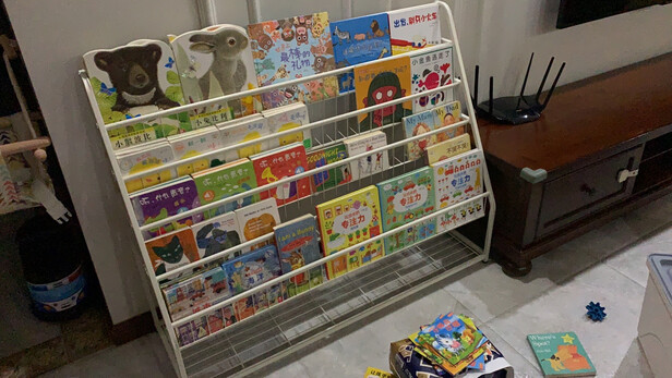 买的这个书架,到货后就迫不及待的安装上了,摆满了儿童书在上面,省的到处乱扔了,而且荆条有序很好索引到想要查找的读刊,质量很好