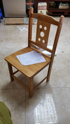 挺好看,木料也好着,装的也稳当,边角处理也好着。还带坐垫子。坐着有点拘束,是靠背太正的原因吧?