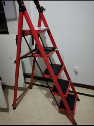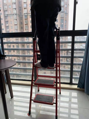 梯子设计的非常人性化 踏板宽而结实牢固,有安全卡扣踩上去很安全。平时拿东西啥的都是用得上,折叠简单轻松,推荐大家购买