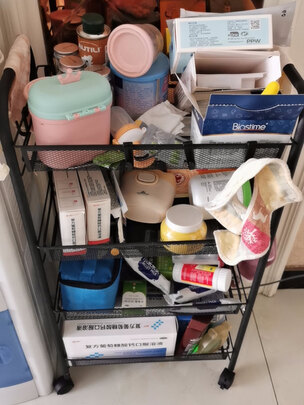 家有宝宝,东西越来越多,奶粉,辅食,尿不湿等等,都好多,家里地方小,桌面上看起来乱乱的,果断入手这个置物架,把宝宝常用的东西全部收拾起来,方便取用桌面还比较干净,置物架是钢材的那种,质量很好,很结实,承重力完全用了