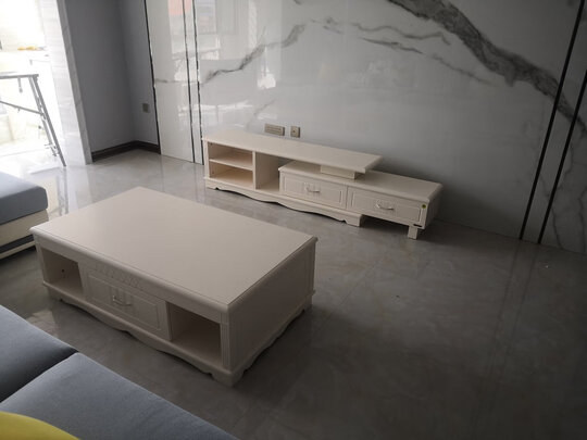 沙发茶几电视柜还可以,安装人员给拼好,摆好。物流太慢了,客服人员也不很上心。
