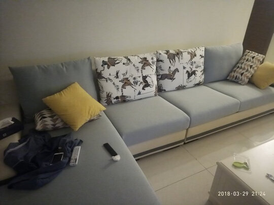 沙发安装好了,家里立马。感觉档次提高了不少。颜色也是我喜欢的。值得推荐的沙发。
