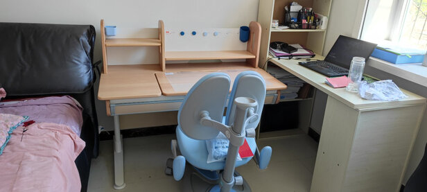 此款桌椅款式时尚大气,颜色养眼,小姑娘??忒喜欢;安装简便,关键是材质好,实木,钢架,厚实,稳当,无异味;桌面也可调节,京造值得信赖!