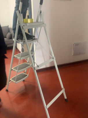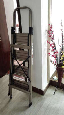 梯子早就收到了,京东物流的速度真的很快,佩服!只是年末这几天有点忙没来的及时来反馈,体制质量很好,材料也比较轻,用起来十分方便,节前清个卫生换个窗帘就用它了,省的凳子摞凳子了,折叠起来体积也比较小,门后面就能放开,短时间放在这里,等卫生清理完了就当地下室吧。总体不错值得购买!