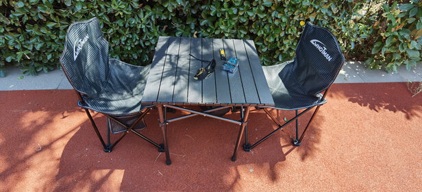 下次河边玩可以用了,很给力,不重,四个小凳藏进折叠桌里,省空间,适合郊游用