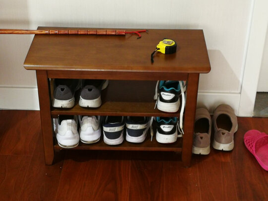 小鞋凳今天收到,质量很好,颜色比较深,材质是胶木还可以,整体组装后看比较厚重,就是组装上得花点时间。;组件能做得更标准就更好了,方便更好的组装。;另外运送太暴力,外包装的护角搞坏四个,但还好内包装有泡沫板,使其产品本身未损伤。