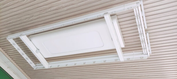 自动晾衣架很好,非常漂亮,很薄,收起来的时候从客厅看也不会遮挡视野。晾衣架的灯光面积很大,光照比较均匀。还有遥控语音控制功能,有时候从洗衣机双手拿出衣服来的时候腾不出手来按升降开关,这时候用语音控制就非常方便。目前看看升降比较正常,希望能够挂多衣服后,不会有什么问题。
