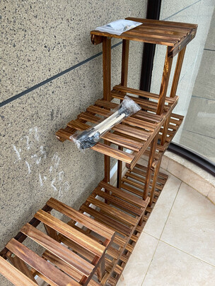安装好以后的效果 整体感觉很不错 摆放植物的空间很够 错落有致 拼装也不费劲 跟这图纸看 一会就打起来了 还算比较结实 味道也还好 放在阳台散会味道 就准备摆上心爱的肉肉啦