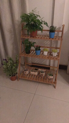 外形外观:高挑美观;占地大小:占地面积不大,很省空间;安装体验:完全没有困难,女生分分钟搞定;产品质量:很不错,很稳定;之前家里的绿萝没地方放,直接在地上摆了一溜儿,真的是一点也不美观,也不方便浇水和打扫卫生,入手这个花架之后,谢谢困扰都没有啦,完美~