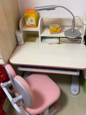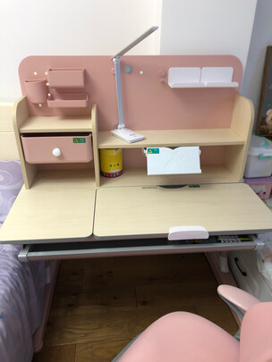 学习桌很棒,一直纠结什么颜色,果然粉色没失望,桌子很重,很稳,新月椅非常好,扶手就可以往上翻,很节约空间,推荐购买