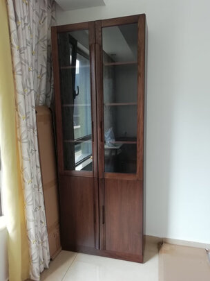 产品材质:摸起来很不错,不懂是不是实木;坚固程度:很坚固,使劲晃还是会有些晃,但是不妨碍;做工工艺:很好看的书柜,有档次;尺寸大小:没有什么误差,跟上面标的差不多;配送服务:师傅送货上门,免费安装,安了3个小时左右,一个四门、一个两门,安得挺不错;其他特色:好看大气,喜欢