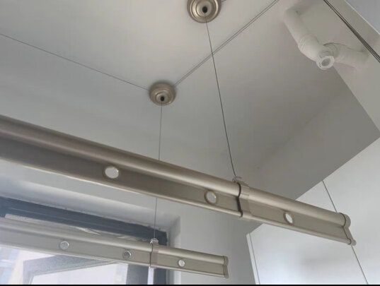 这个可升降晾衣架非常不错,质量蛮好的,铝合金材质非常不错,安装师傅效率挺高的,安装的非常好,不占空间使用非常方便,效果挺好的!