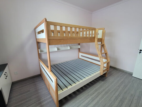 床回来了,刚安装好了,孩子高兴的一直在玩呼,质量不错阿,无毒,床睡2个人都绰绰有余,颜色也好看喔,材质不错,尺寸都合适呼,发货速度也快,很好安装呵,自己安装的