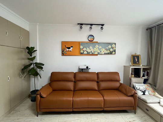 京东的发货很快。顺丰的服务很周到,安装师傅很细心。沙发的皮质手感非常好。无异味儿。坐上去硬中有柔。功能位电动平顺,无杂音。
