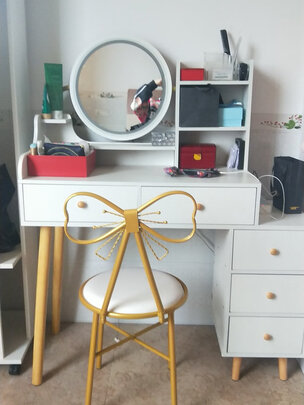 梳妆桌特别喜欢,颜值高质量好,中看又中用,;有需要的朋友不要犹豫了,组装起来方便快捷,;分分钟就可以搞定,质量也很好,非常喜欢,最;后祝商家生意兴隆!