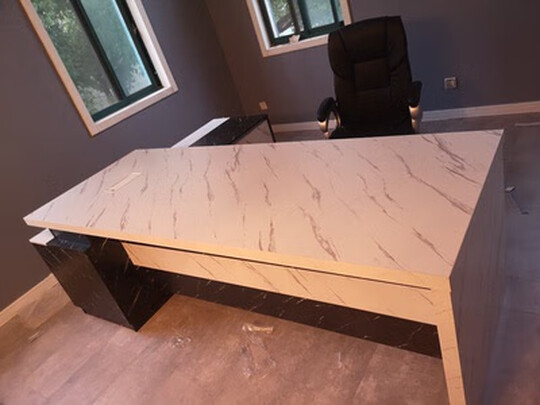 桌子质量满意没有瑕疵没有色差,颜色很正,安装起来跟办公装修比较搭配质量满意。