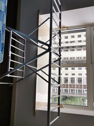 产品材质:金属质感;外形外观:很漂亮,简洁,;其他特色:收纳方便,不用时收起来不占地;承重能力:很强,晾晒被子很方便