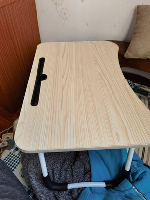 京东很快,而且越来越快,所以还是习惯京东购买。这款电脑桌大小刚刚好,看起来也很有质感,而且设计也比较合理,桌面角度可以调节,方便看书玩电脑时改变角度。在靠近身体一侧,有设计阻挡,书本电脑不担心滑下来,使用起来很方便。