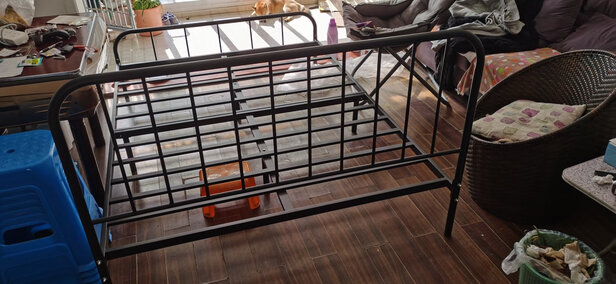 今天安装了一下,挺方便的。看起来比较扎实。;手摸没有大的毛刺;不过个别地方的漆已经有点起皮,焊接的地方有点黄色锈迹了。;个人建议如果能再做高一点更适合一些,垫个薄床垫感觉离地太近了,仅有一个行李箱的厚度。