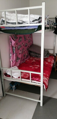 床收到了、送货速度很快,比那种三四百的确实好很多、颜值高(卖点),设计新颖(卖点),不用复杂烧脑的上螺丝,毕竟螺丝以后容易松。视频一看就会,两个人20分钟搞定。到时候搬家还可以拆卸掉 ,设计的很棒,另外这床非常结实,不摇晃,质量很好,很稳,直得购买。