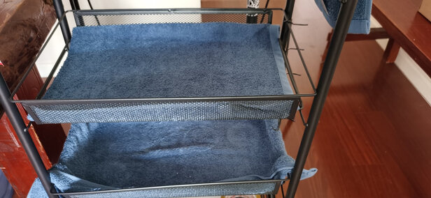 架子还可以,放着杂物绰绰有余,而且底部还有轮子,移动起来也挺方便的!