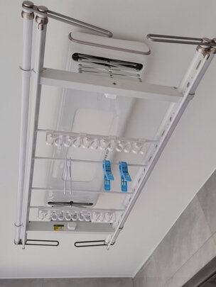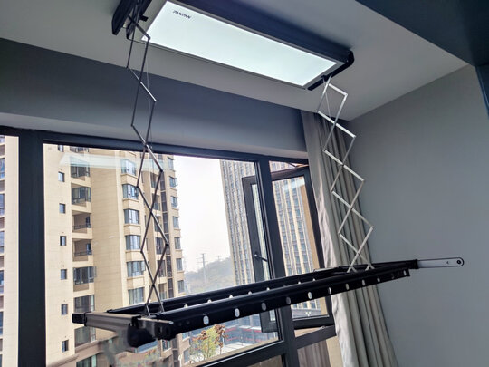 包装完好,安装师傅态度好很专业,晾衣架质量很好,感觉高端大气上档次,电动上下伸缩自如,电机很静音,中间LED照明灯很亮
