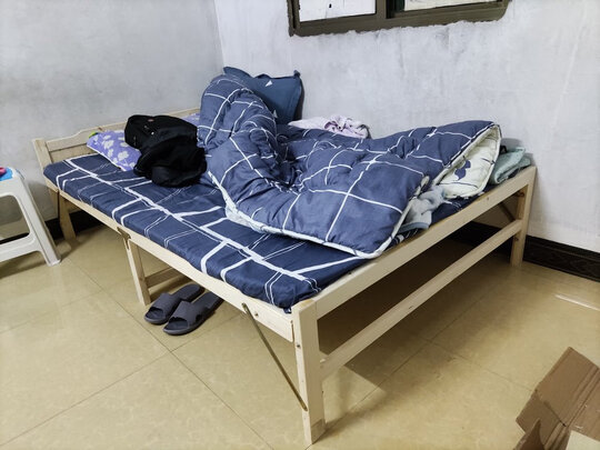 彭友实木折叠床收到了?物流很快??赞一个;商品包装很好,很有分量??打开果然不负所期?原木原色?,轻微松木味,稍微晾一下就铺开来了?;着重说明一下,真的好方便,适合懒人一族?全部订好的,打开就用,挺牢实的,如图所示,上面走动都没异响?质量杠杠滴?性价比高,值得购买;五星???
