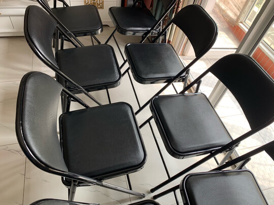 收到货还是挺惊喜的,配色很好看,椅子的质量也很好,很稳定,不会摇晃,高度刚刚好。椅子有靠垫坐垫,坐起来很舒适。最最最重要的是,用不到的时候可以折叠起来放在一旁,非常的省地省空间。个人感觉美中不足的是座位有点小,可能更适合小朋友或者女孩子吧。