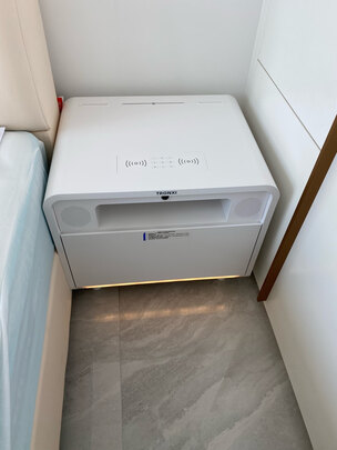 外观颜值很棒,质量还可以,打开纸箱没有什么味道,树脂材料环保健康,可以用来当插座,无线充电器,床头柜,关键还有一个智能指纹锁,有些东西可以放里面,当作一个保险抽屉用也是极好的!