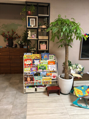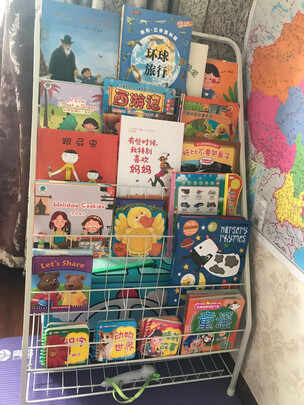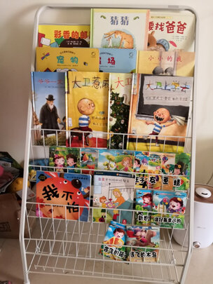 安装简单,书架质量很好,不靠墙也不会摇晃,买的小号,高度适中,适合幼儿拿取