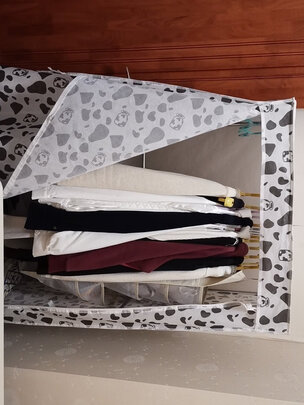 之前买过一个75厘米长的简易衣柜,外边的蒙皮是无纺布材质的,特别不结实,没用多久就破了一个大洞。在京东上逛了好久,终于让我遇到了这款简易衣柜。1米5的长度,可以容纳春夏秋冬的衣服。蒙皮是防水布材质的,特别结实。骨架是不锈钢管的,虽然是单层的不锈钢管,但是强度很高。这款衣柜组装起来很方便,一个人按照说明书组装,不到半个小时就组装好了。组装完还剩下了一些零件,可以当做备用零件。