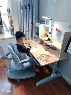 黑白调的桌子就是好,看了很久终于买回来了,小朋友特别喜欢呢,座椅坐上很舒服,虽然等了好久安装师傅才安好,但是等待是值得的,这些终于不怕写作业看平板因高低不合适怕脊骨和眼睛有影响了,还很贴心的收到送的护眼台灯,三个档更简单方便