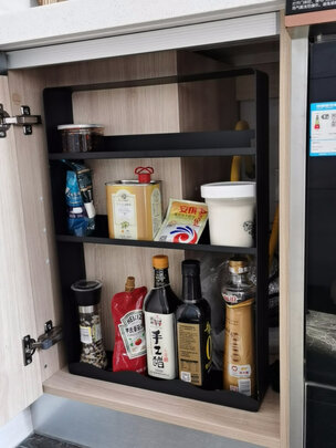 请假以后炖鱼调料陈列架,纠结了好久好久,最后选了这一款,本来想安装在墙上的,结果发现了一个宝藏地方放在橱柜这里特别合适。经认真检查,质量不错
