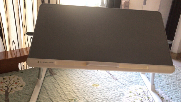 家里没有书桌,所以用电脑和写点东西啥的特别不方便。如果买个书桌,又没有合适的地方放,所以就买了一个之前在酒店看到过的小桌子,桌子特别轻便,组装起来也很容易,能升降,放在家里一点也不占地方。而且也挺结实的,胳膊靠在上面也没咋晃悠,高度能调节,所以坐在床上也能用,物美价廉!