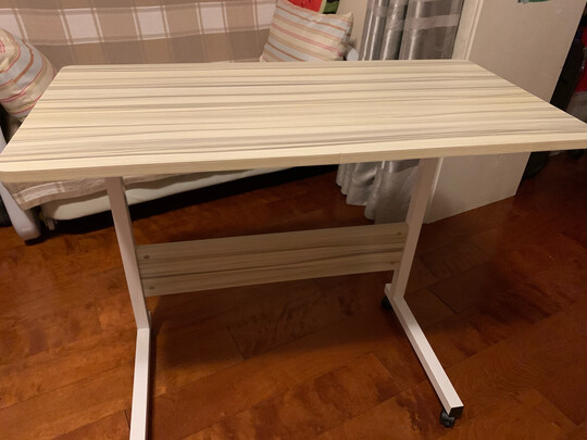 桌子很方便,带滚轮,可以想在哪办公就在哪办公,太方便了。而且做工也不错,比较结实稳固。很适合放在沙发边和床边办公,性价比还可以。