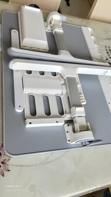 外观样式:轻便,灰色耐看,皮纹略先档次,高度可自由调节,平方或側放可自由选择。;使用感受:无异味,操作简单,便于床上办公。雪橇式桌腿,推拉特别顺溜!;产品质量:杠杠地