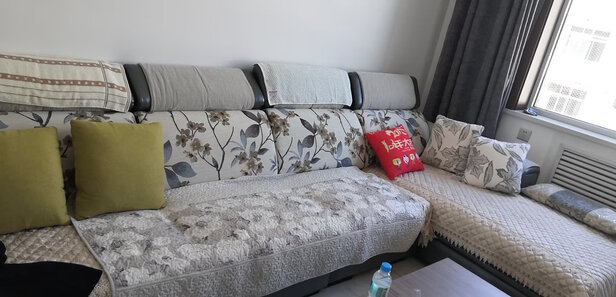 材质质感:刚安装完,坐上去挺舒服的,靠枕脖子位置真心好;外观款式:外观挺适合我家浅色系;其他特色:安装师傅也挺好,还赠送沙发保养液