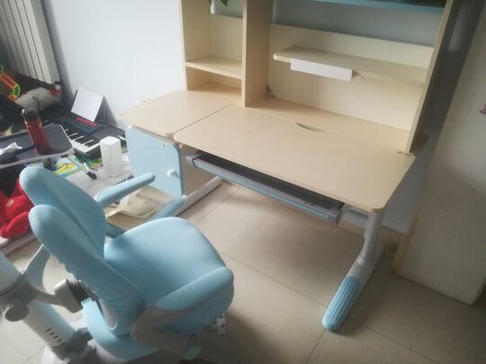 用料扎实,整体安装比较简便,总体设计还不错,桌椅高度均可调,用到小学三年级都没问题了。如果置物架能用点更轻质的材料就更好了。不满意的是快递小哥竟然不打招呼就放到~,大几十斤东西要自己搬回来。
