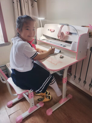 在网上看了很久,买了这款儿童桌椅。到货挺快,没有什么异味,桌子木材材料也很好,孩子很喜欢。免费上门安装,服务还是很到位的。;孩子之前是趴在茶几上看视频,现在坐在桌子上看,腰板也挺直了,眼睛离pad距离也远了。