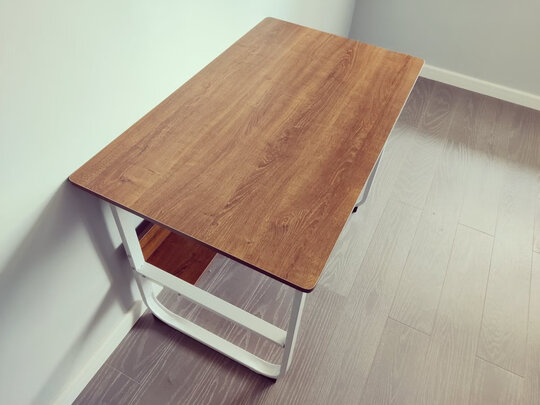 木板挺厚实的,很结实,有质感。安装方便,如果。桌子确实会晃