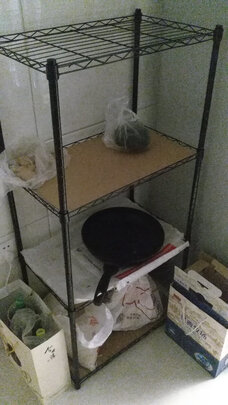 蔬菜置物架安装好了,还没收拾卫生。各种菜放上去特别合适。架子也很牢固。可以滑轮移动,也可以固定住。性价比高。物流也很给力。一次愉快的购物。