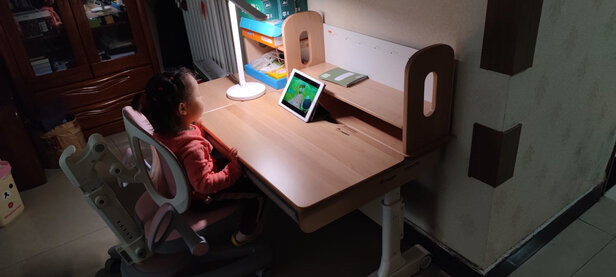在网上看了很久,买了这款儿童桌椅。到货挺快,没有什么异味,桌子木材材料也很好,孩子很喜欢。免费上门安装,服务还是很到位的。;孩子之前是趴在茶几上看视频,现在坐在桌子上看,腰板也挺直了,眼睛离pad距离也远了。