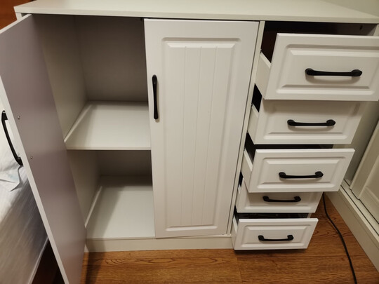 四斗柜抽屉外观好看,价格合理,材质一般,是锯沫压缩的板材,由于一贯相信京东自营的产品,希望质量过关。抽屉里面的空间有限,如果加高加深一些,储物能力会更强大。不过,毕竟价格摆在那里。安装配件每样只,太少了。有一个多余